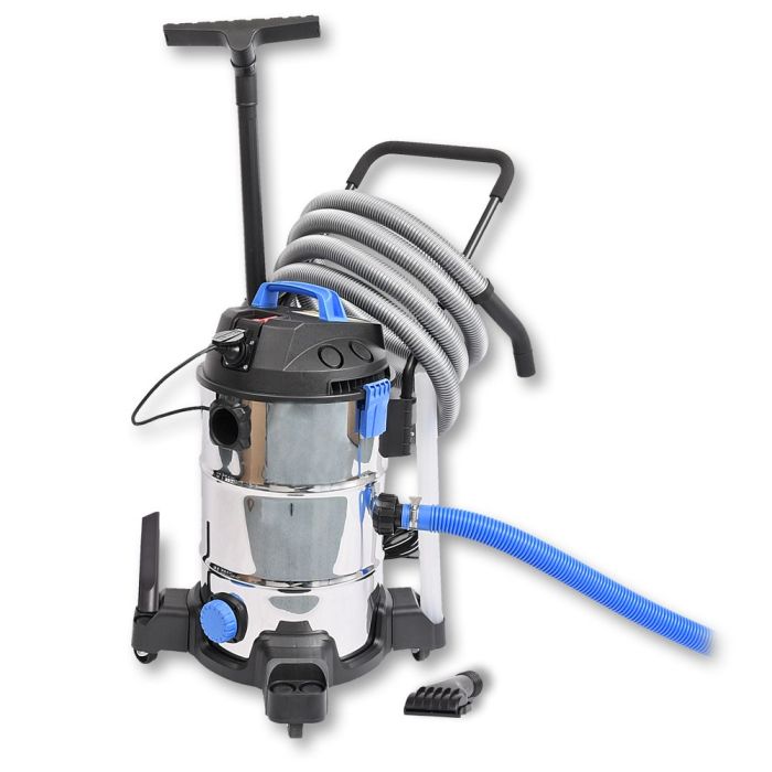 La potente turbina di aspirazione da 1200 watt consente l’aspirazione fino a una profondità di 2,5 metri e la pompa sommersa ha un tappo separato in modo che l’aspirazione possa essere utilizzata anche solo per l’aspirazione a secco (senza scarico d’acqua).