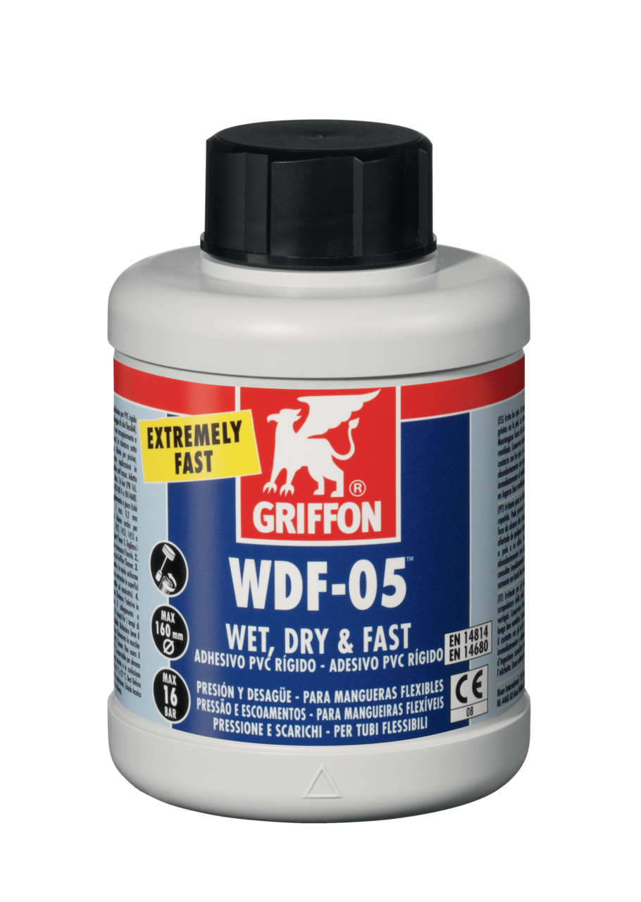 Solvente per unire tubi in PVC e ABS (flessibili), manicotti di accoppiamento e raccordi in pressione e drenaggio fino a diametro 160 mm. Pressione massima 16 bar per PVC (PN16) e 5 bar per ABS (PN5).