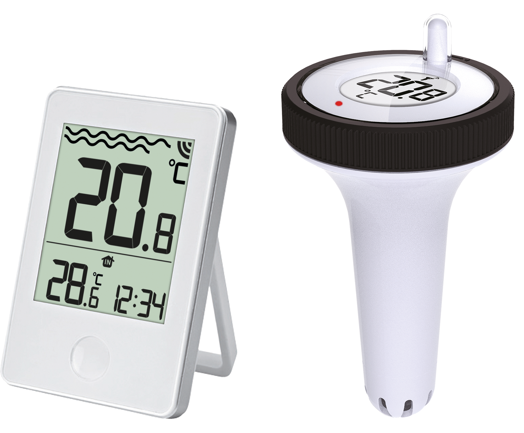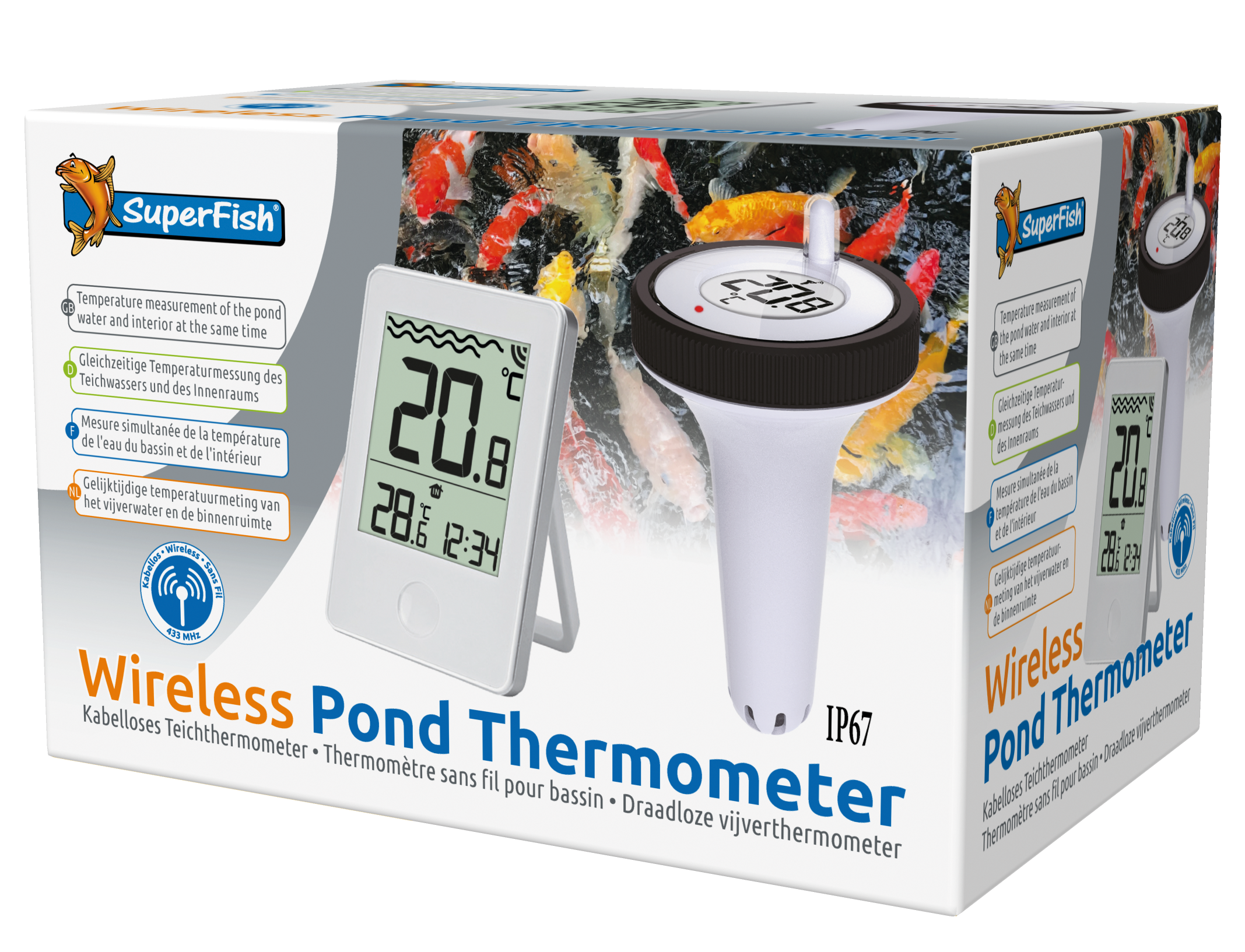 Termometro wireless, preciso e facile da usare, che misura la temperatura dell’acqua del laghetto e dell’ambiente.